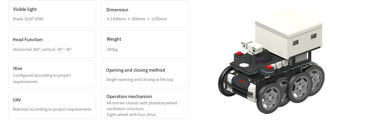 Eight-wheel four-wheel drive planetary swing arm chassis with strong off-road capability and excellent maneuverability.